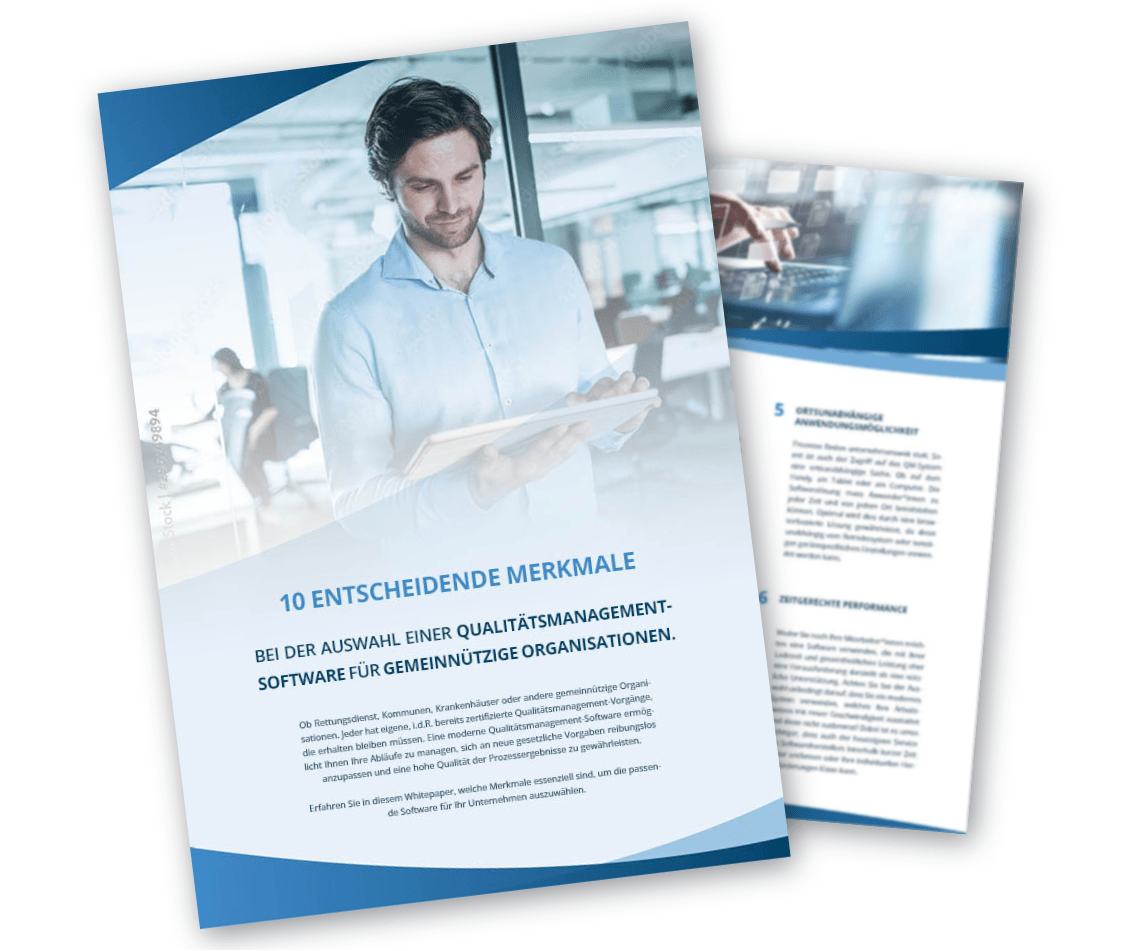 Infomaterial: 10 entscheidende Merkmale bei der Auswahl einer Qualitätsmanagement-Software für gemeinnützige Organisationen.